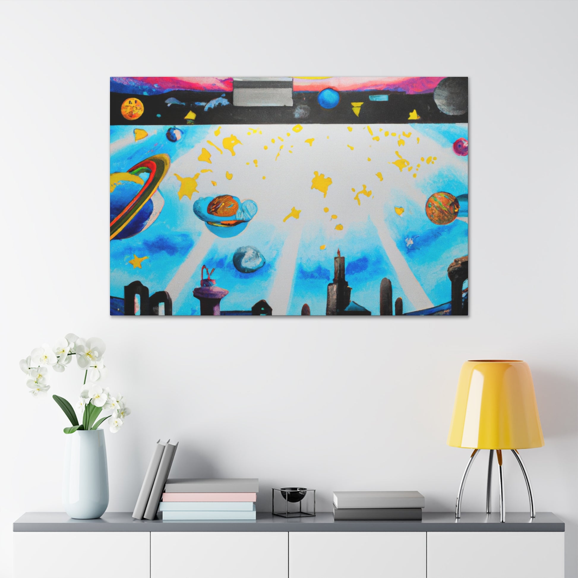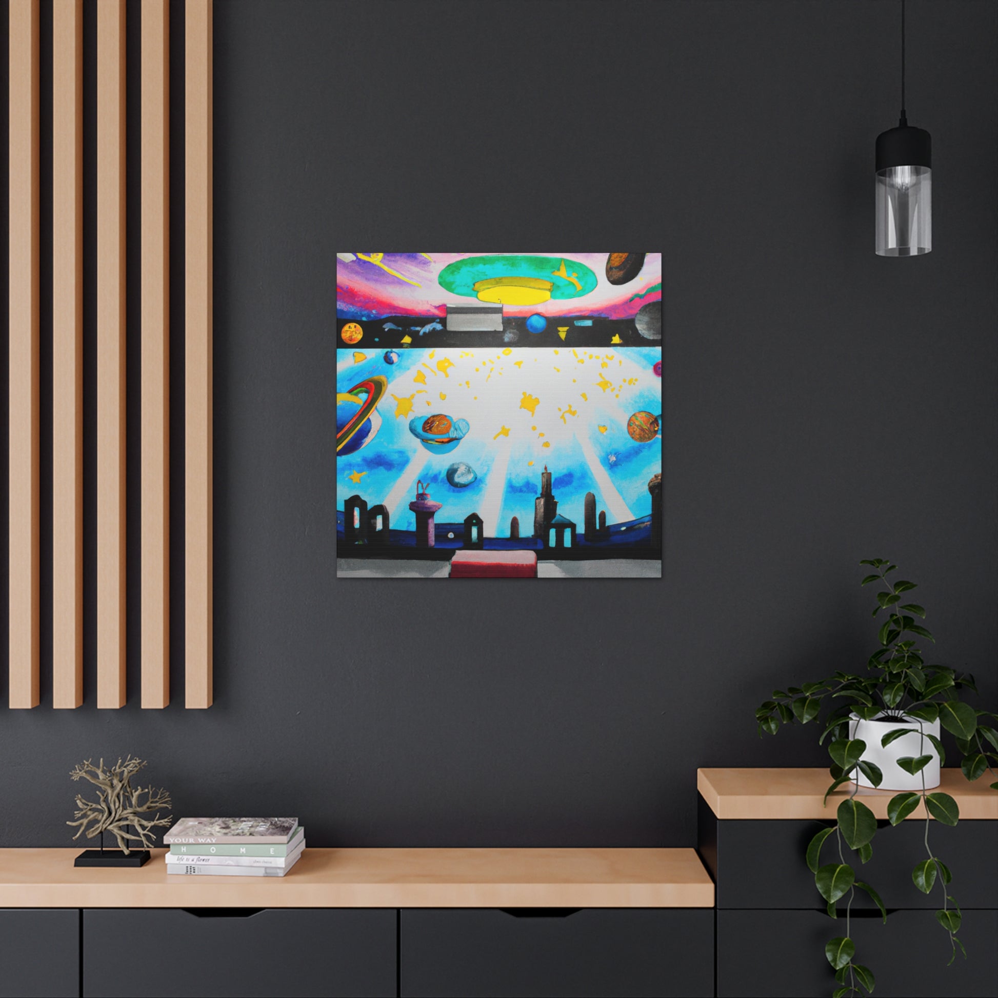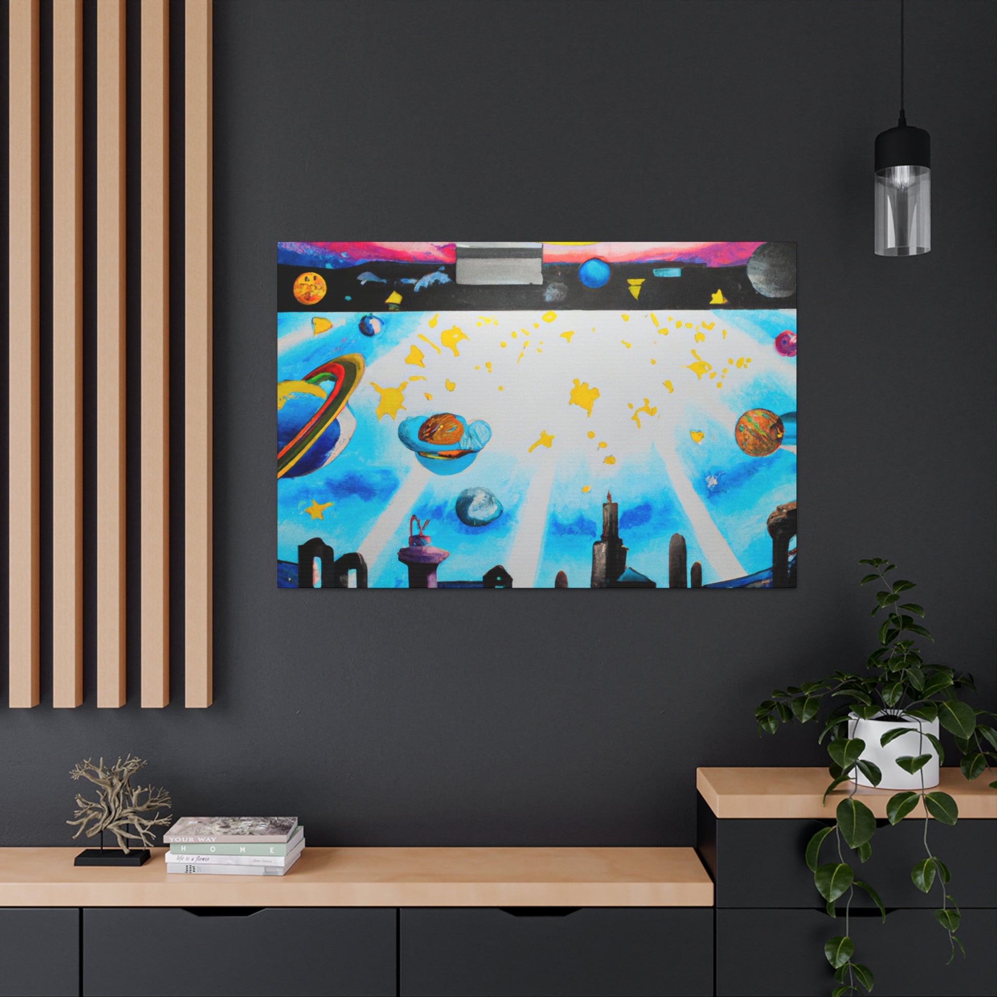 A modern twist on urban art, this graffiti mural painting will make a bold, energetic statement in any living room. With its bright neon hues and vibrant brush strokes, this canvas is sure to turn heads. Add a little edge to your space with this unique and creative piece! #graffitiart #muralpainting #artwork #neonart #canvasprint #homedesign #wallart #canvaswallart #urbanart #artdecor #interiordecor