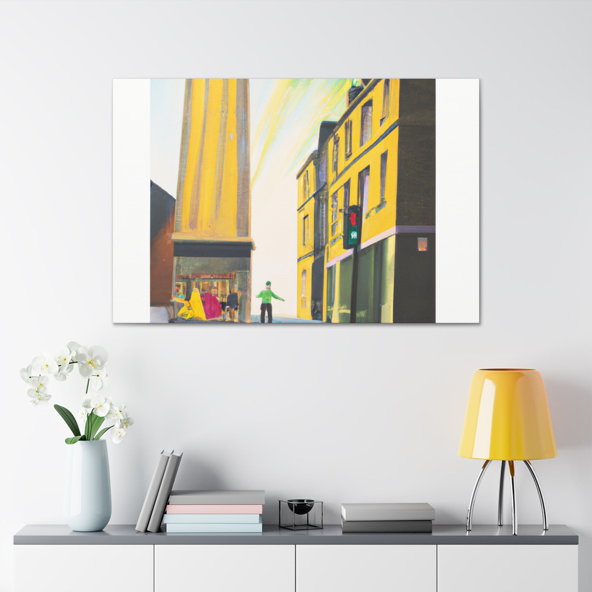 Discover a new reality: a bustling city street alive with contrasting colors & textures! Fresh perspectives abound in this vivid digital art print, perfect to personalize any living room wall.