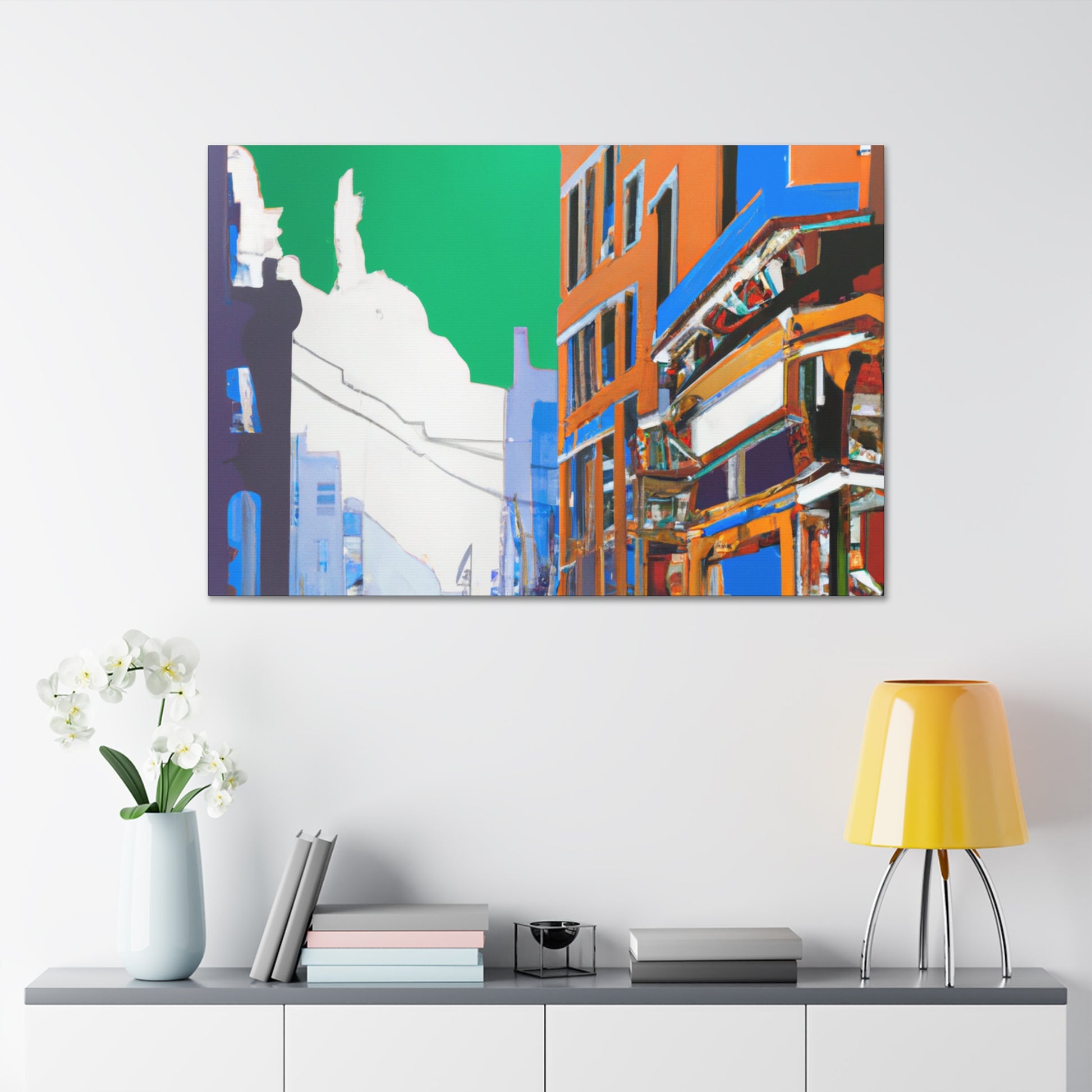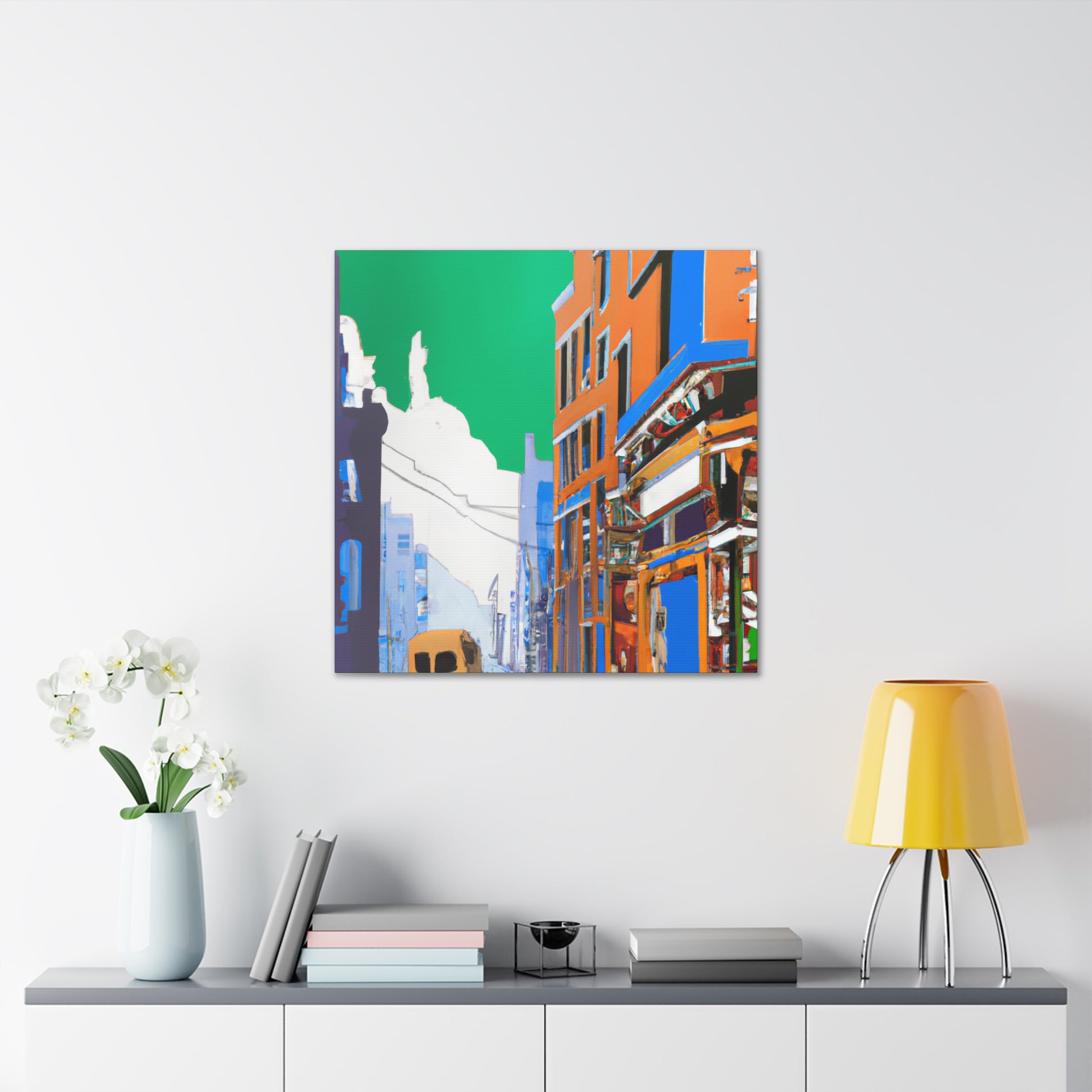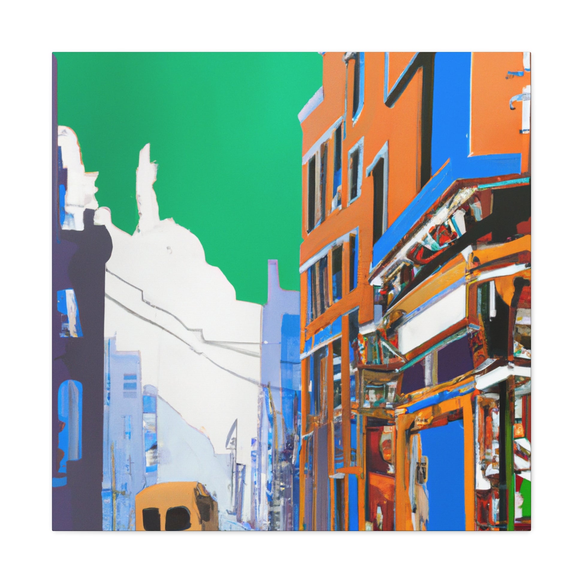 Bring a rich, vibrant life to your living room walls with this urban street scene painting! The complex colors and textures burst with energy, depicting an ever-moving urban landscape. Bursting with emotion and rich in detail, this canvas is sure to bring timeless beauty to your home and beauty to your walls. #urban #canvas #painting #street #scene #art #home #livingroom #landscape #decor #style #wall