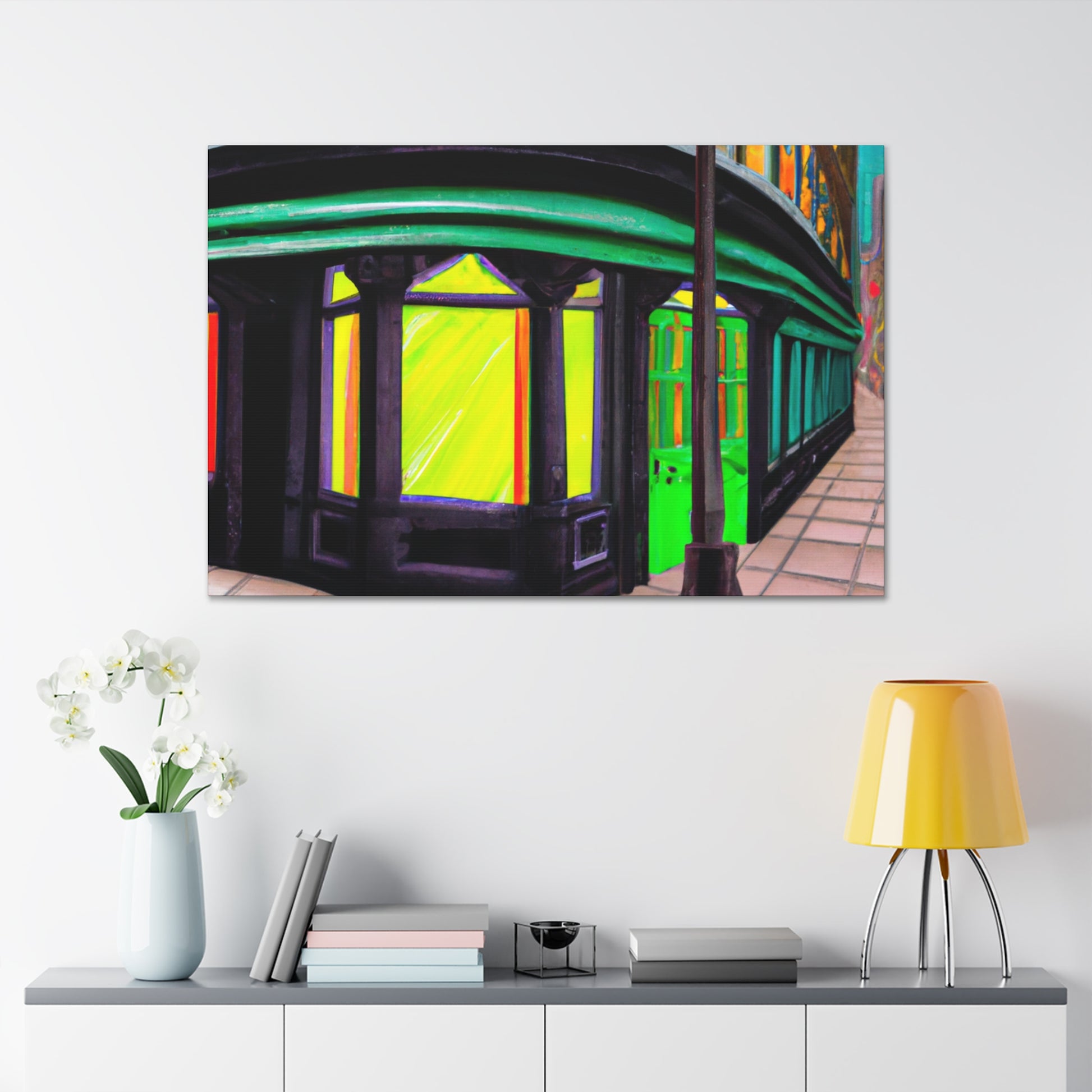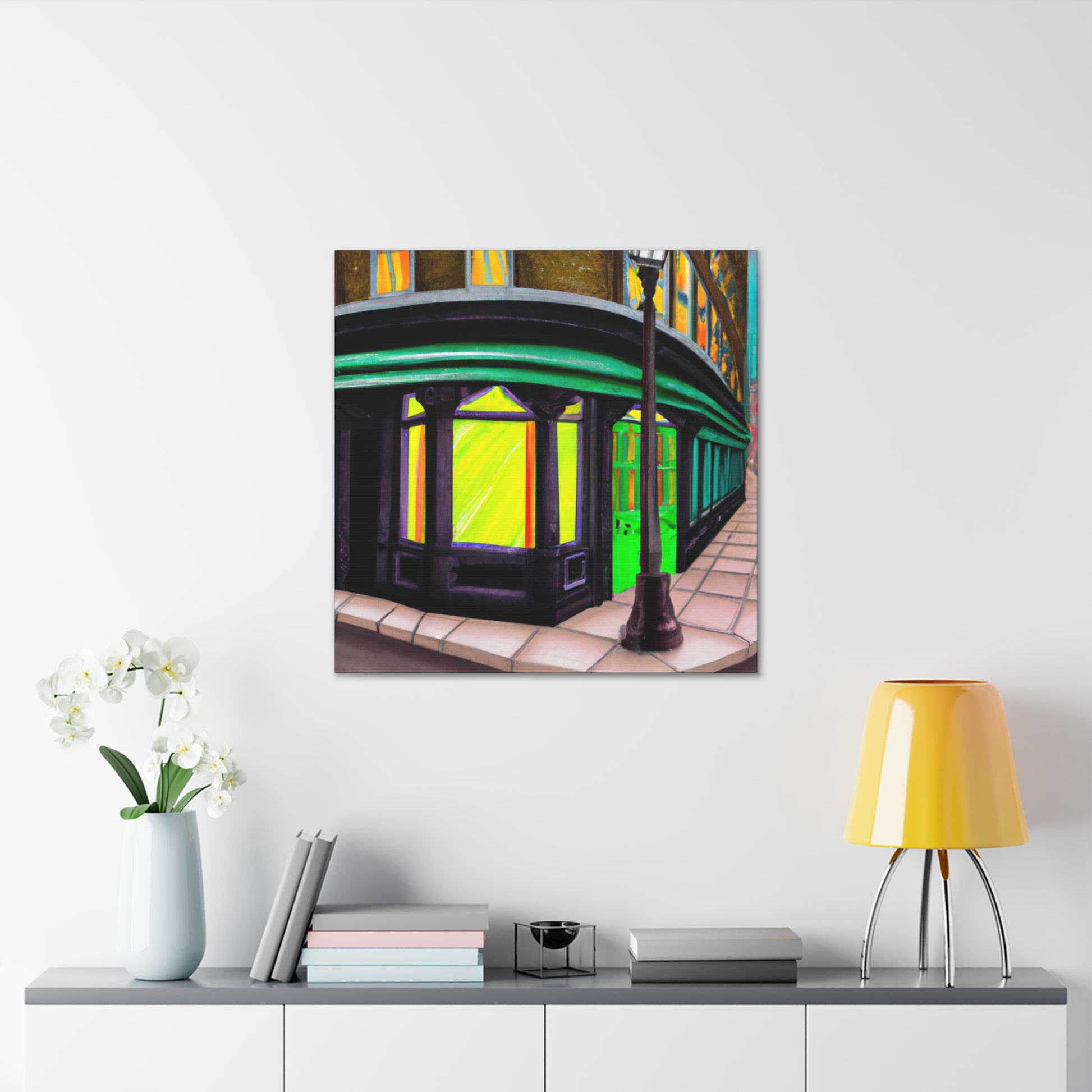 Mutable colors in dramatic composition⚡️View this stunningly evocative urban street scene painting: the perfect touch for an energized living room. Brushstrokes of blues, greys and oranges evoking an industrial skyline and downtown vibes - come explore the vibrant hues! #streetart #urbanscene #interiordecor #annapolisliving #downtownvibes #canvasart #wallart #mutablecolors #energyinthehome #dramaticcomposition #industrialskyline
