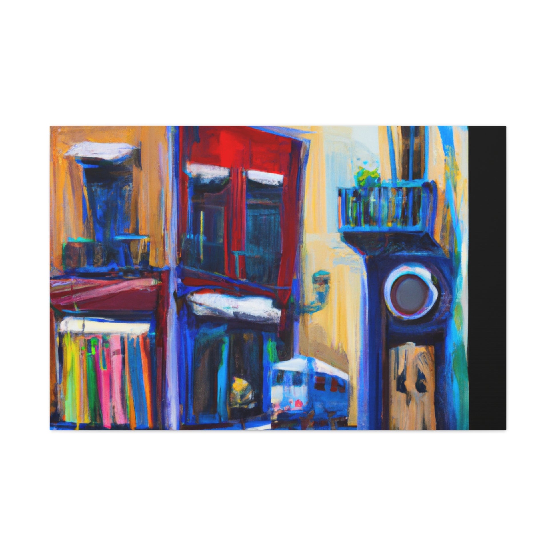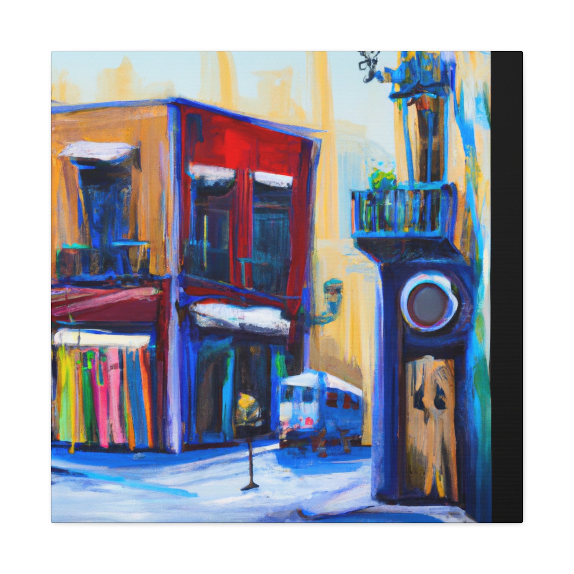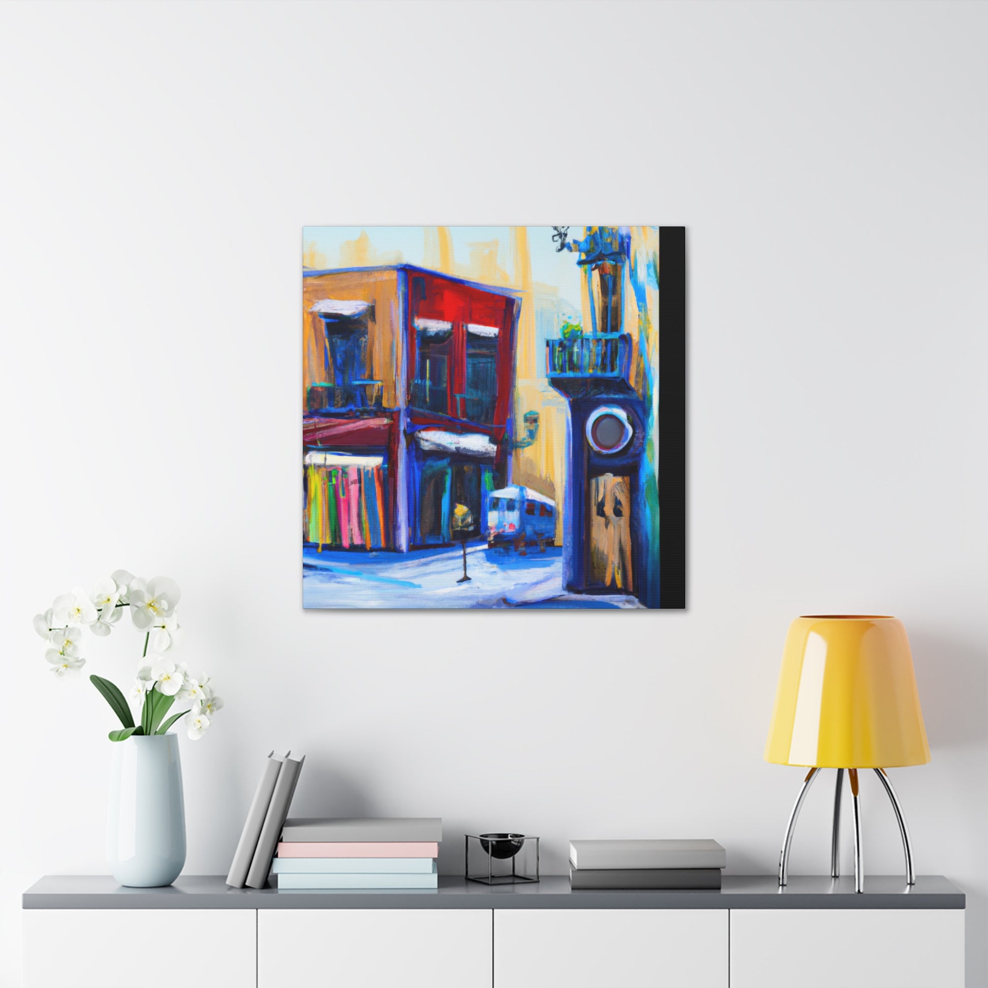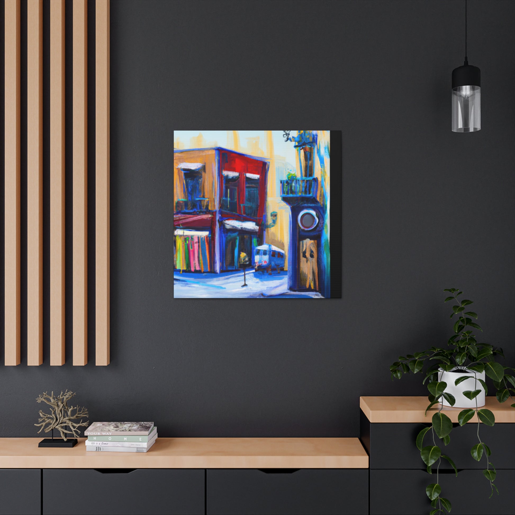 A vibrant, textured canvas that captures the life of a busy urban street scene: the hustle and bustle of bustling sidewalks, vivid, colorful shop fronts, and stunning architecture. Perfect for any living room and sure to draw the eye of your guests #streetart #graphicdesign #urbanart #artgallery #fineart #interiordesign #painting #modernart #canvaspainting #abstractart #digiart