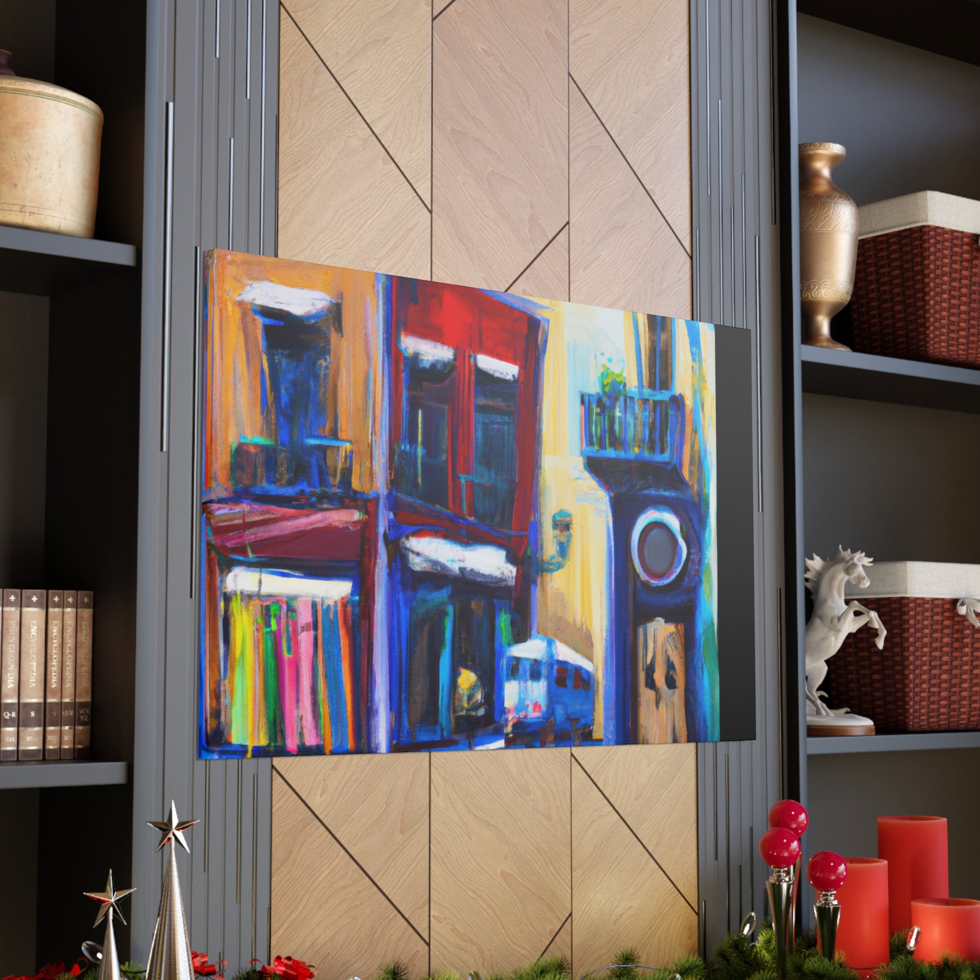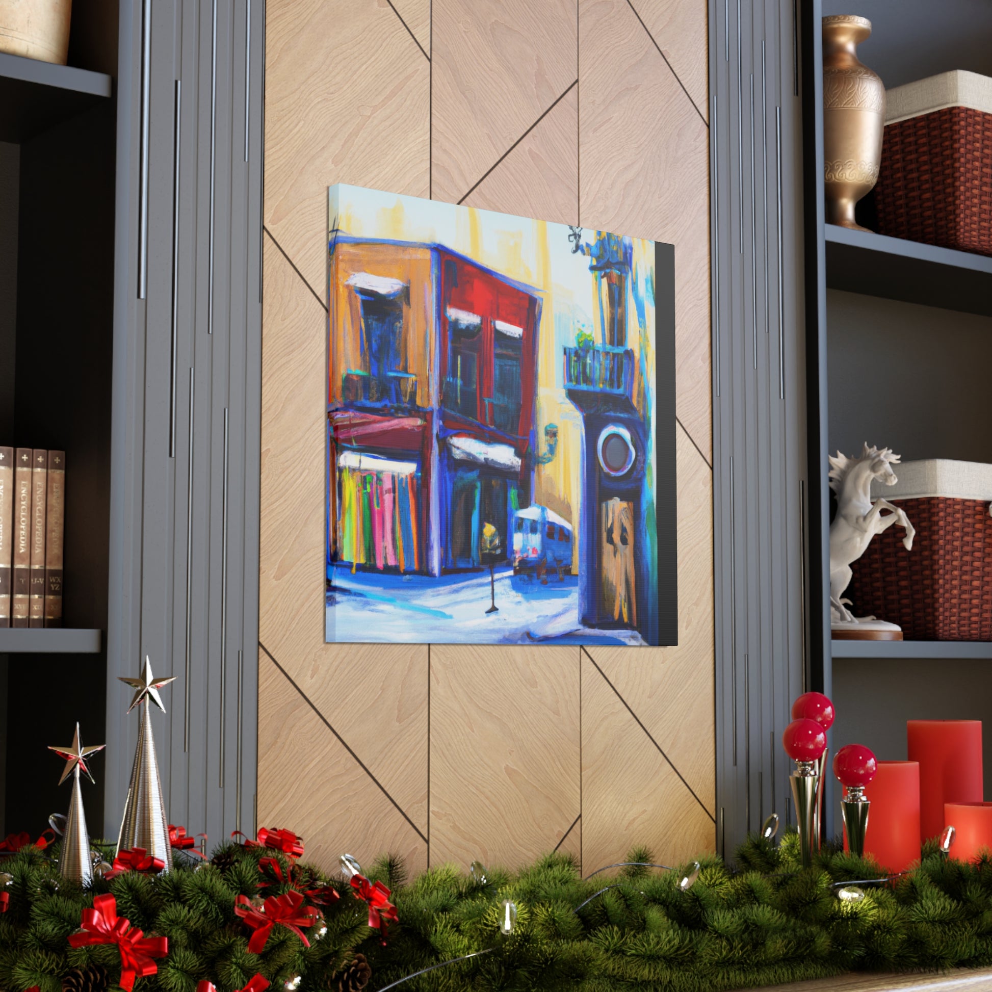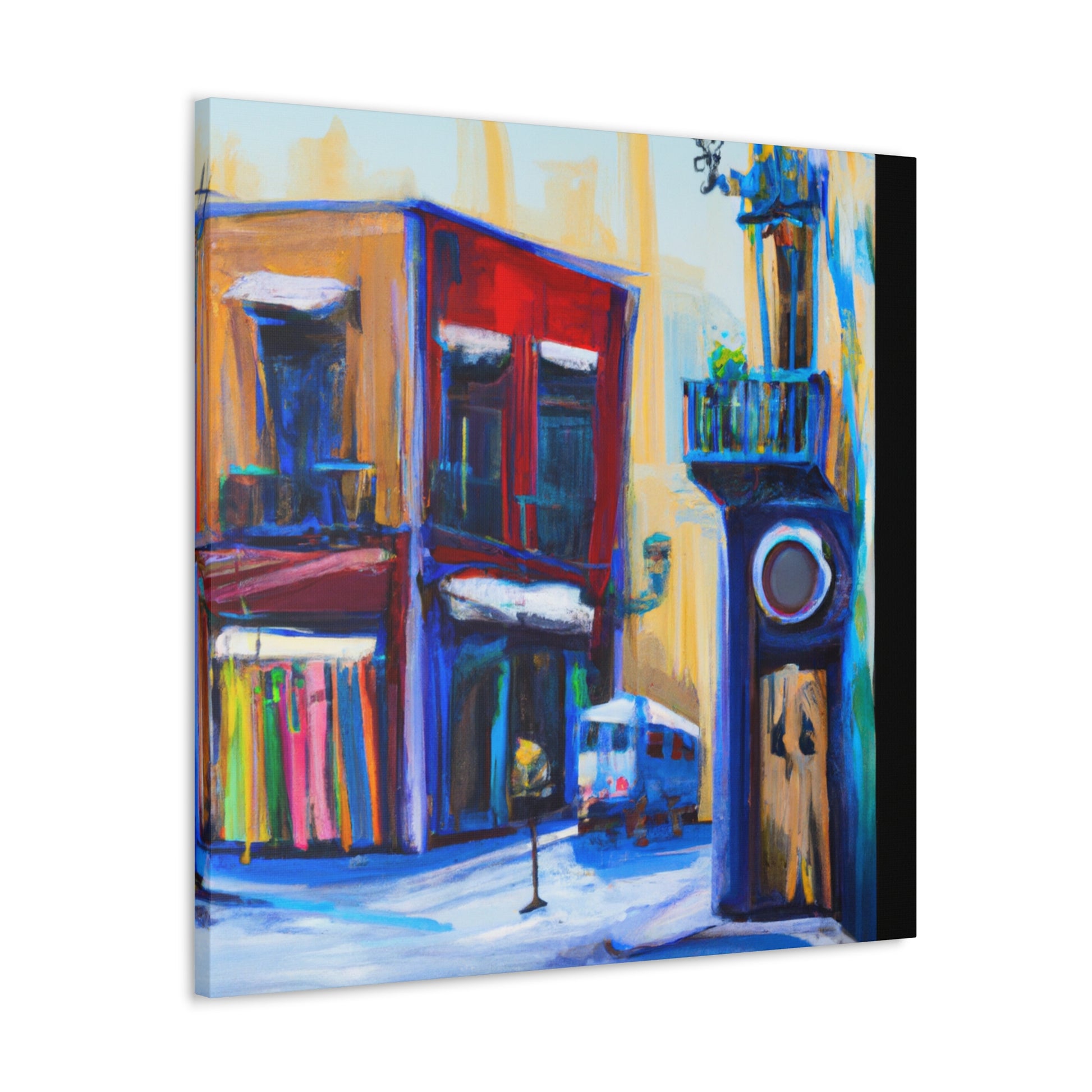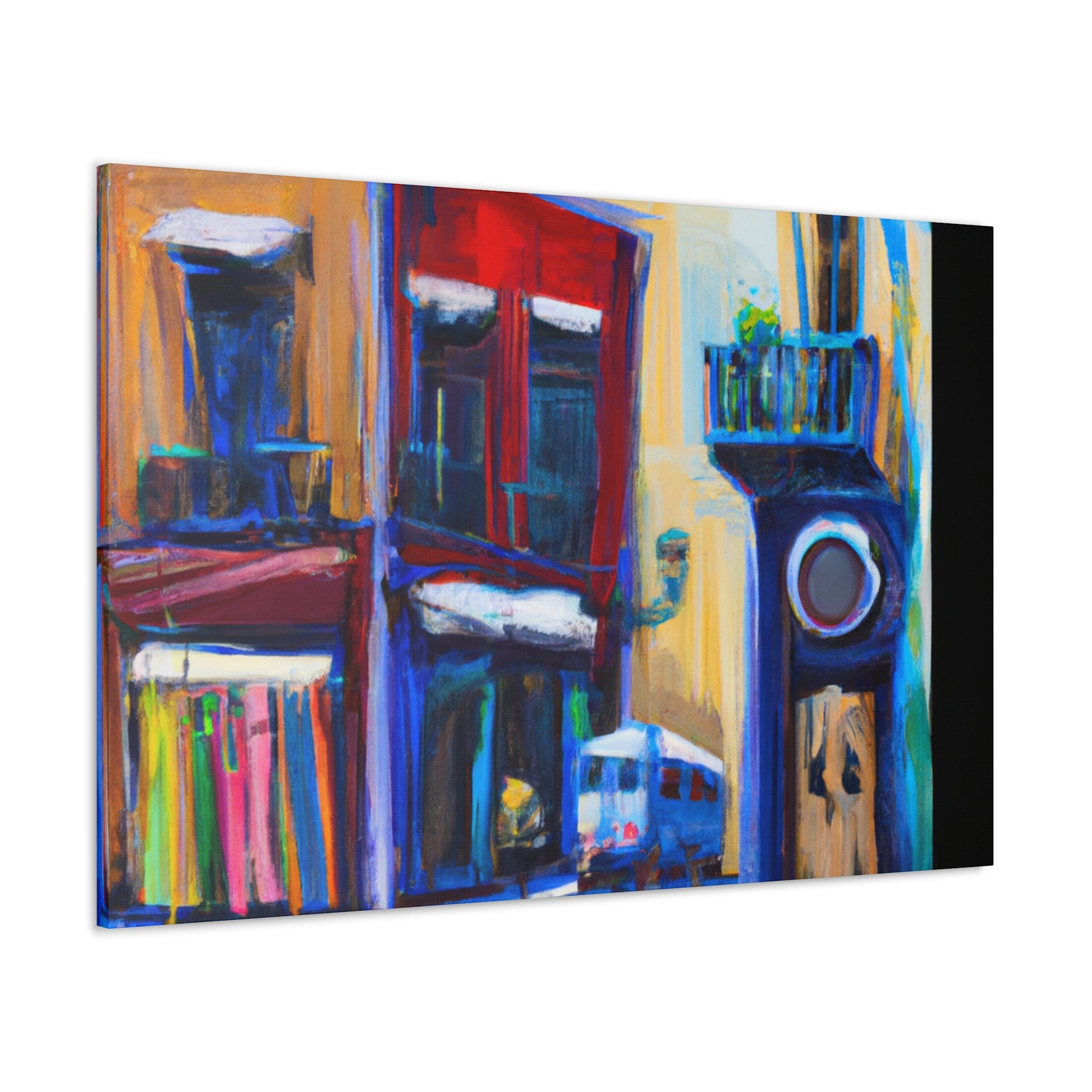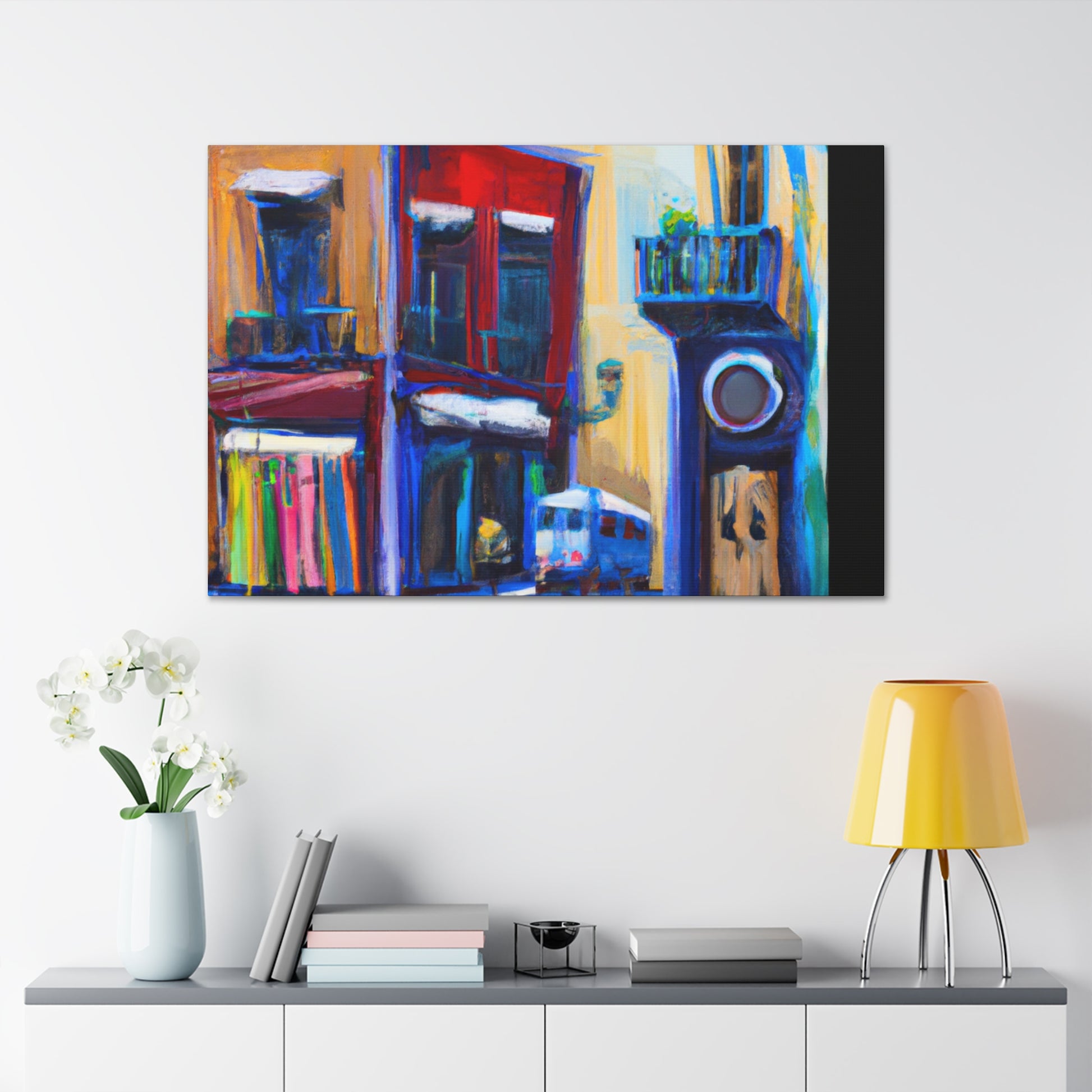 A vibrant, textured canvas that captures the life of a busy urban street scene: the hustle and bustle of bustling sidewalks, vivid, colorful shop fronts, and stunning architecture. Perfect for any living room and sure to draw the eye of your guests #streetart #graphicdesign #urbanart #artgallery #fineart #interiordesign #painting #modernart #canvaspainting #abstractart #digiart