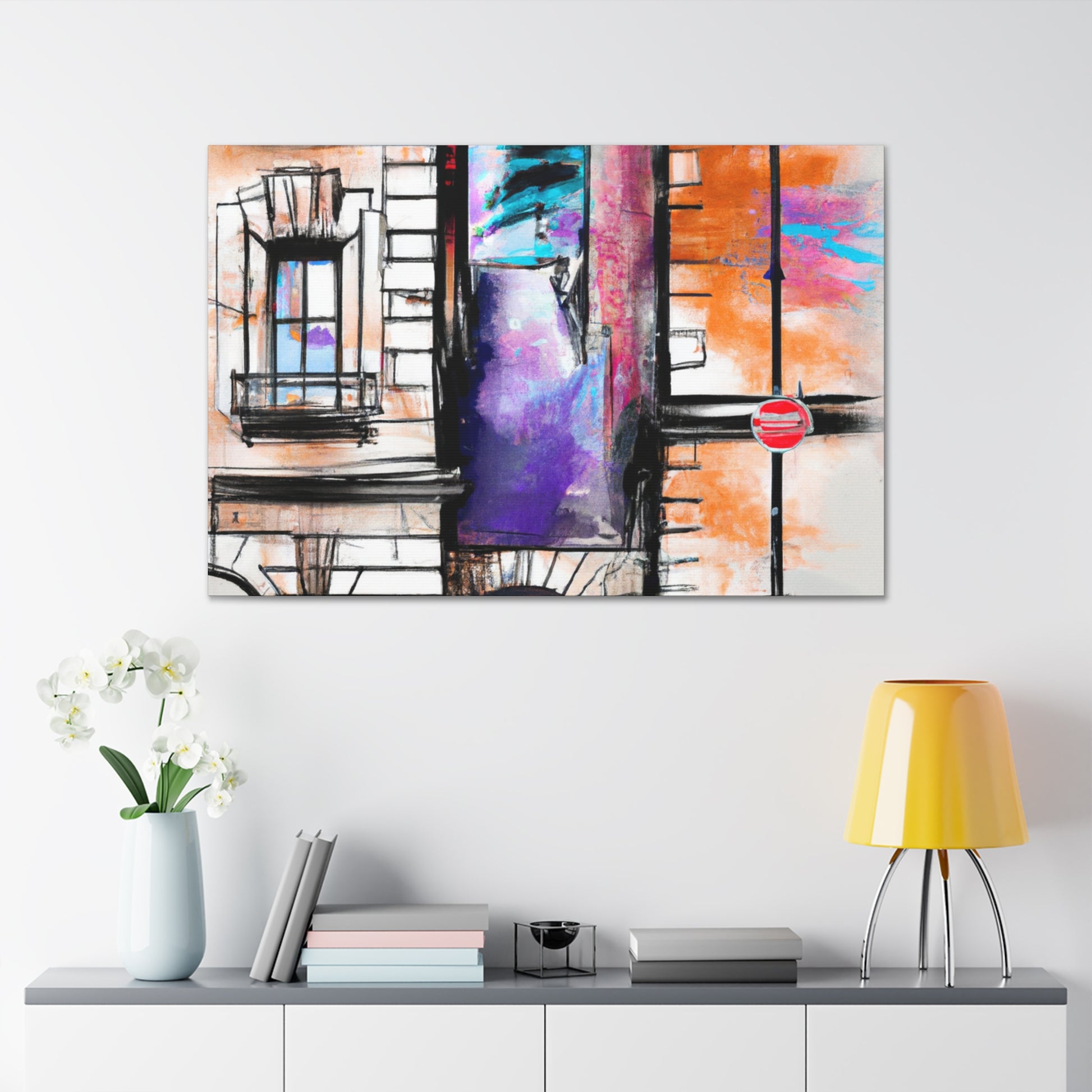 Moody and invigorating, this artwork offers a unique view of the vibrant energy of an urban street scene. With its colorful buildings, busy street, and inviting sidewalk, this canvas art evokes the delight of a city adventure. Liven up your living room with a one-of-a-kind, digital piece of art today! #UrbanArt #StreetView #CityEnergy #MoodyVibes #EyeCandy #UniquePiece #DigitalArt #VibrantLife #CityScene #WallArt #LivingRoomStyle