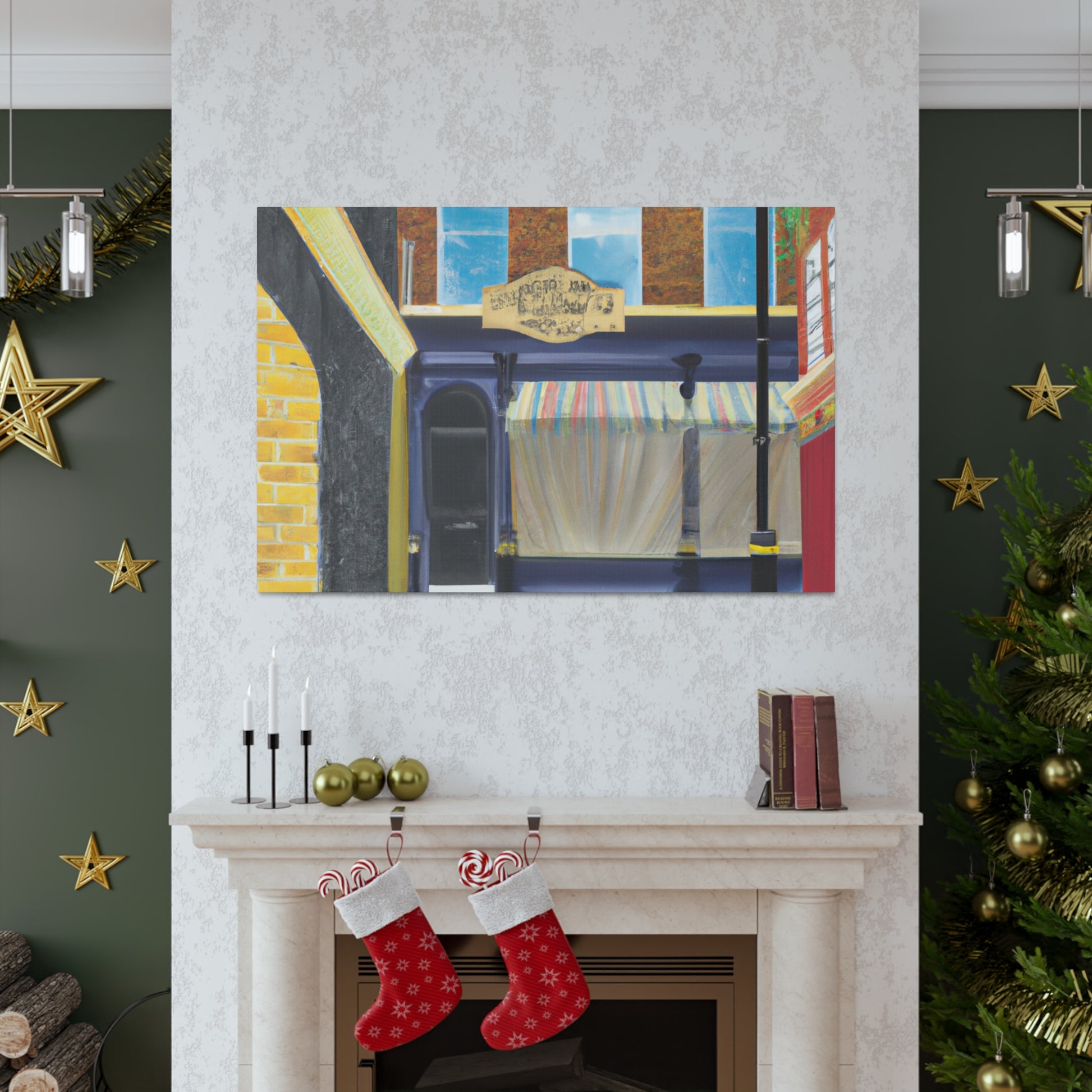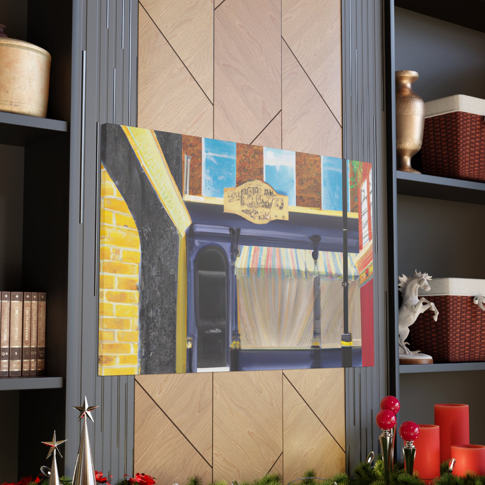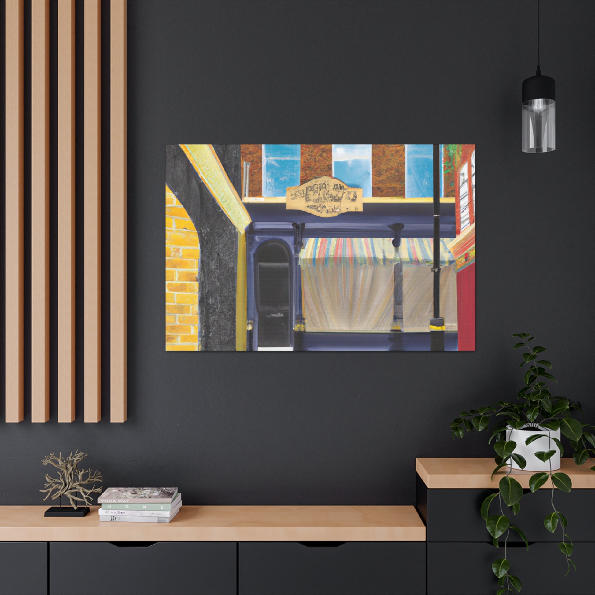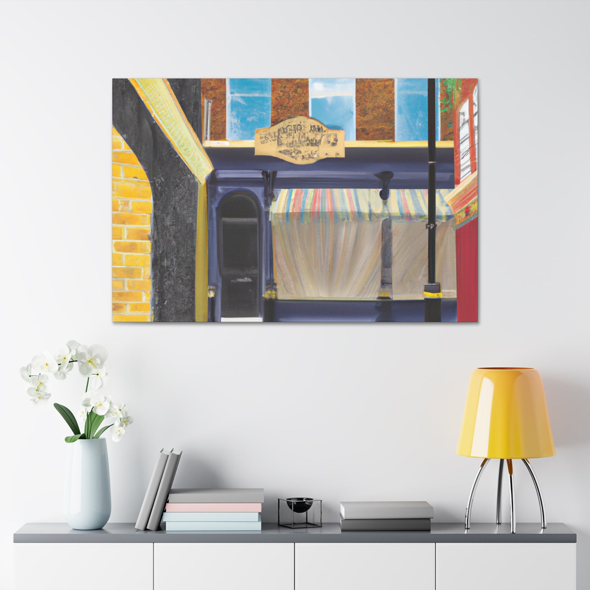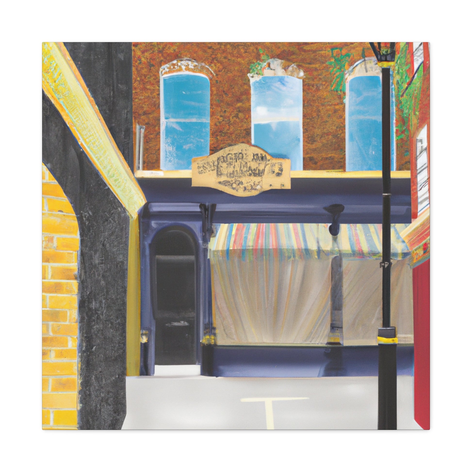 Embody the vibrant city life: a wondrous mix of colors, charm, and history emerge from this canvas. Follow the lively street, where active markets, majestic churches, and intriguing alleyways abound. Let this urban landscape be your backdrop for cozy nights in, and #canvasprint #homedecor #streetlife #streetpainting #urbanart #cityscene #wallart #artcollector #interiorinspo #digitalart #statementpiece