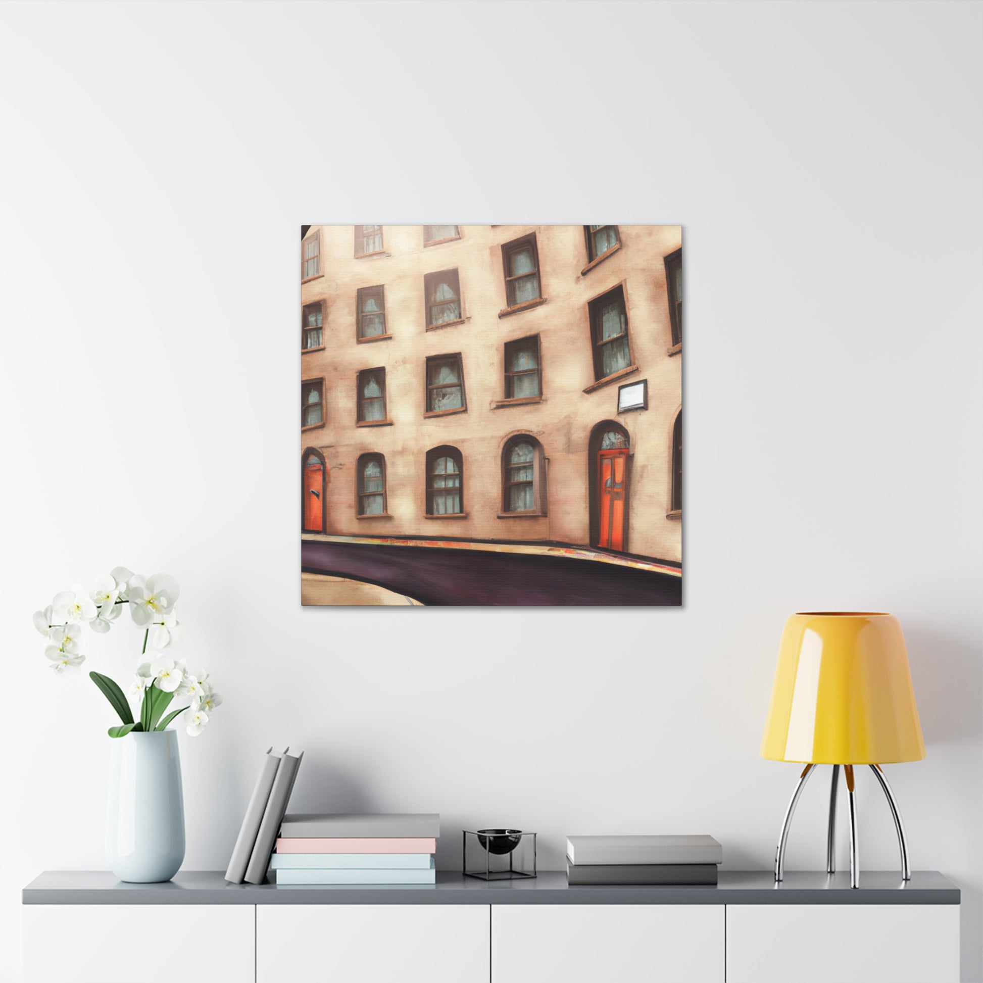 Step into the hustle and bustle of an urban street scene, captured in a single vibrant canvas and hung on your living room wall. The digital art piece captures the vibrancy of city life, with pops of color and layers of detail from the buildings and characters. Hang this piece and watch your living room come alive! #painting #canvas #homedecor #interiordesign #art #cityscape #urbanart #abstractart #creativearts #wallhanging #homedecoration